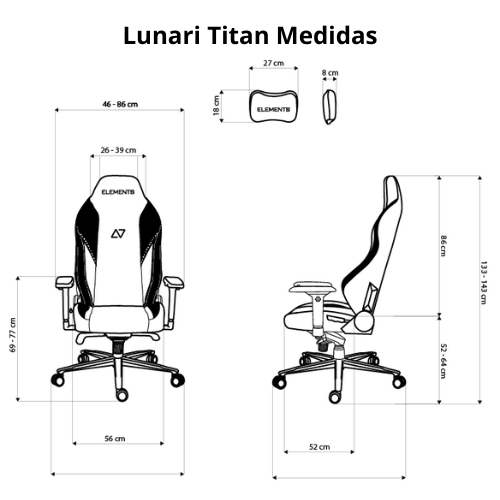A Lunari Titan é projetada para ser uma cadeira de alta capacidade, com dimensões e componentes que a tornam robusta e confortável. Ela é recomendada para usuários de até 1,95 m de altura e 170 kg de peso. O design da cadeira é notável por suas dimensões amplas, tanto no assento quanto no encosto, garantindo que pessoas maiores e mais pesadas possam usá-la com conforto.